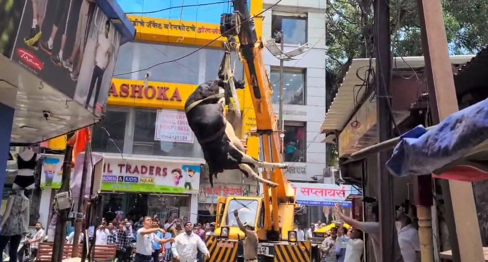 Pune: An unusual sight startled residents of Kapad Galli in Raviwar Peth on Thursday when a cow was discovered stranded on the second floor of a building, sparking a flurry of concern and curiosity in the typically calm neighborhood.