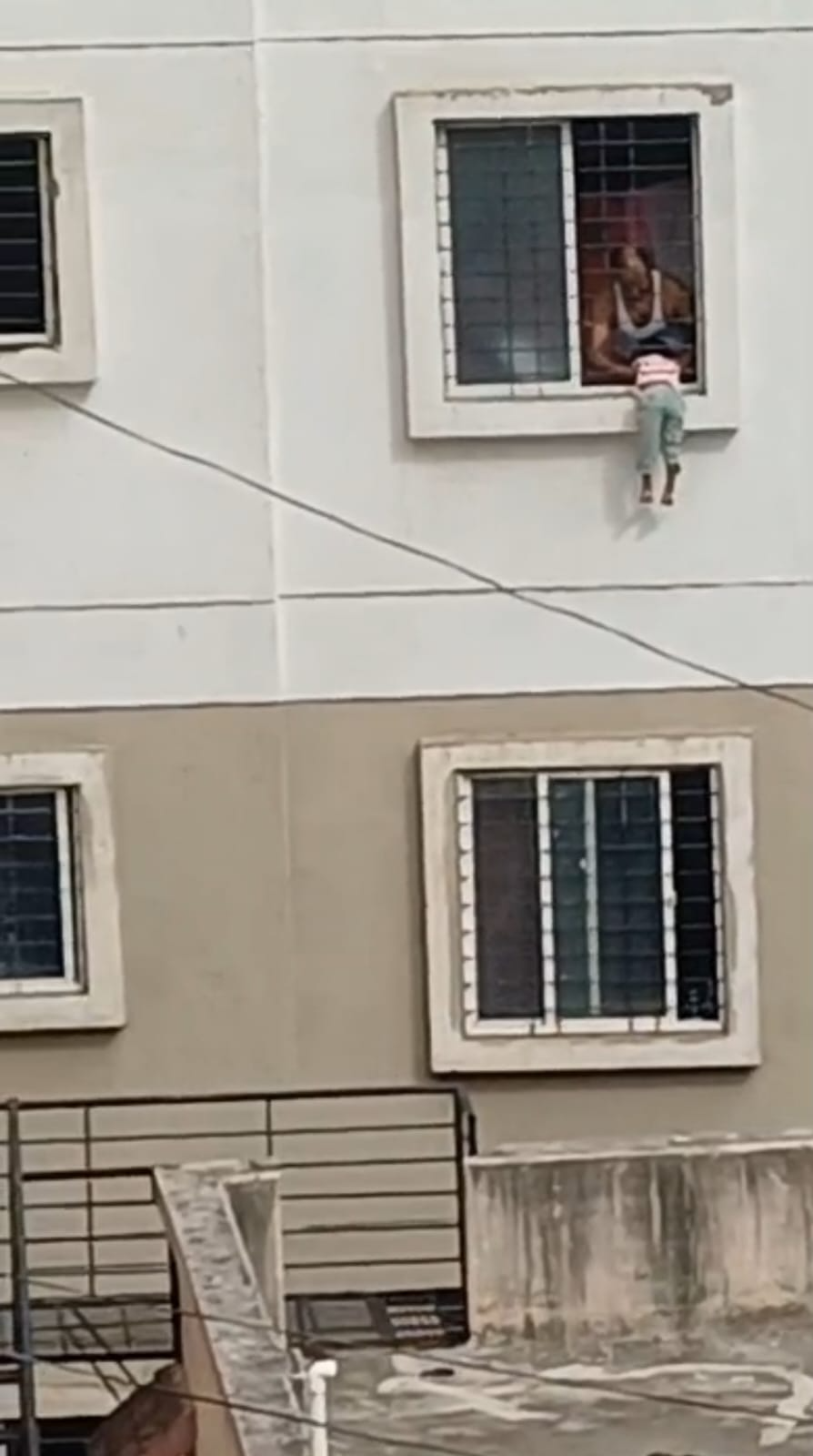 The incident took place at Sonawane Building in Gujar Nimbalkarwadi. The child, named Bhavika, was locked alone inside her third-floor apartment by her mother, who had gone to drop her elder daughter at school. Left unattended, Bhavika walked to the window and managed to stick her head out through the iron grills, eventually reaching the balcony. Realizing the danger, she held on tightly to the window bars and remained still.