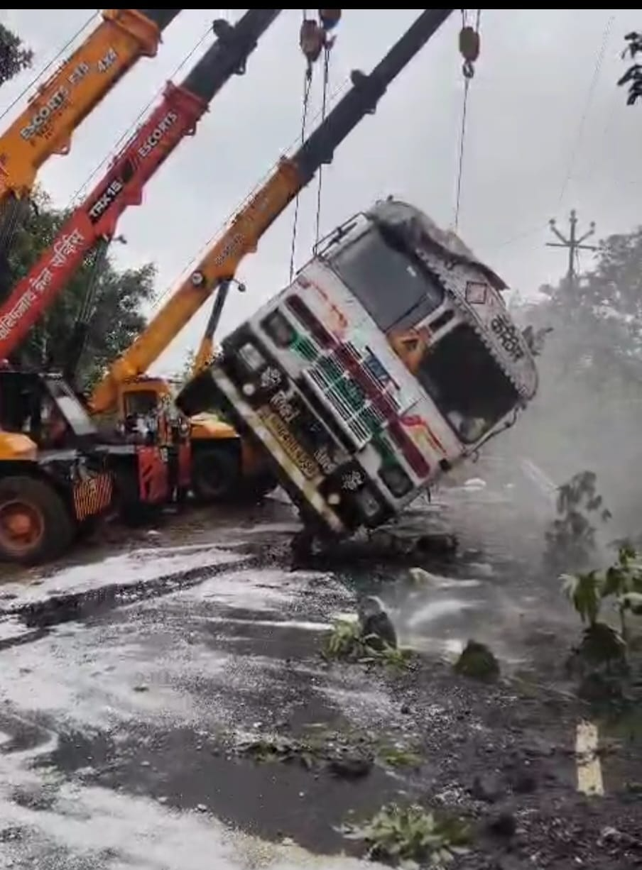 Hydrochloric Acid Tanker Overturns Near Tamhini Ghat Driver Rescued Safely