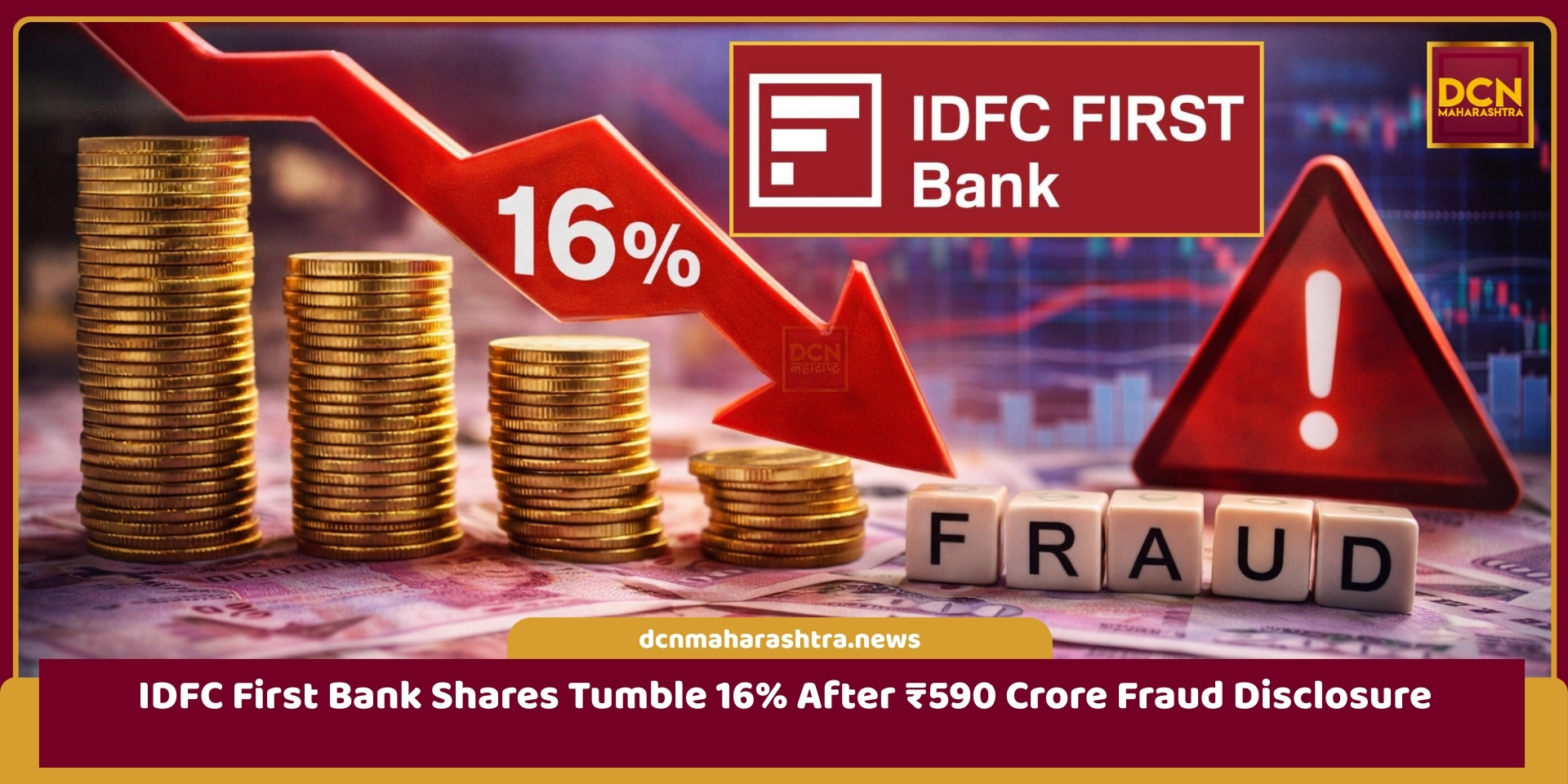 IDFC First Bank shares tumbled sharply on Monday after the lender disclosed a ₹590 crore fraud, triggering heavy selling and multiple block deals. Shares fell as much as 20% in early trade before trimming losses to around 16%, marking the steepest single-day decline since March 2020.