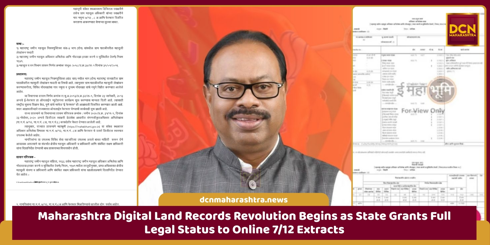 A major governance shift has begun in the state as the Maharashtra Digital Land Records initiative received a historic push on Wednesday. The Revenue Department has granted full legal status to online 7/12 extracts, 8-A records and Ferfar (Mutation) documents. Revenue Minister Chandrashekhar Bawankule said in his social media post the move will end dependence on manual paperwork and reduce delays faced by farmers and landowners across Maharashtra.