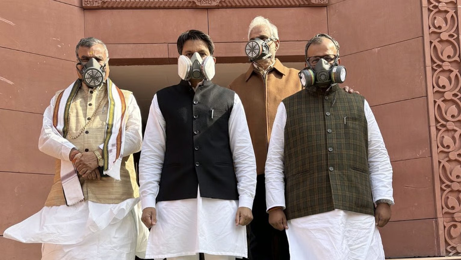 New Delhi: Parliament Pollution Protest took a dramatic turn on Wednesday when Opposition MPs entered Parliament wearing gas masks. They said this was the only way to show how serious Delhi’s air pollution problem has become. The protest happened on the second day of the Winter Session, and the MPs demanded that Parliament stop all other business and discuss the rising health emergency.