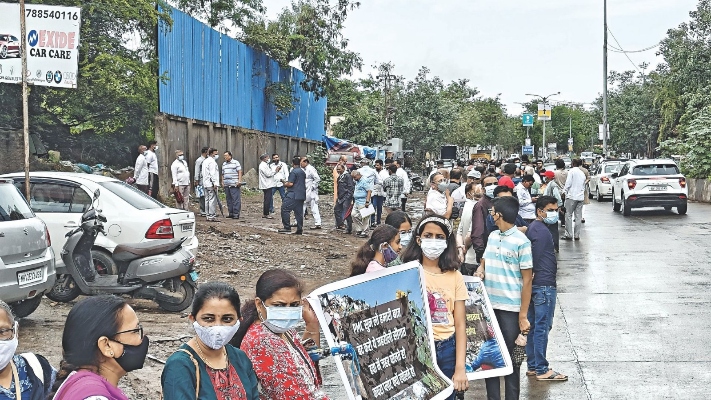 Pune: Over 500 residents from Sus and Baner took to the streets on Sunday, forming a human chain to voice their opposition against a garbage processing facility located at Survey No. 48 on Sus Road. Despite heavy rainfall, the protest saw participation from people of all age groups, including senior citizens, women, and children. The main concern raised by the community is the persistent foul smell originating from the plant, which they say is severely affecting their quality of life.