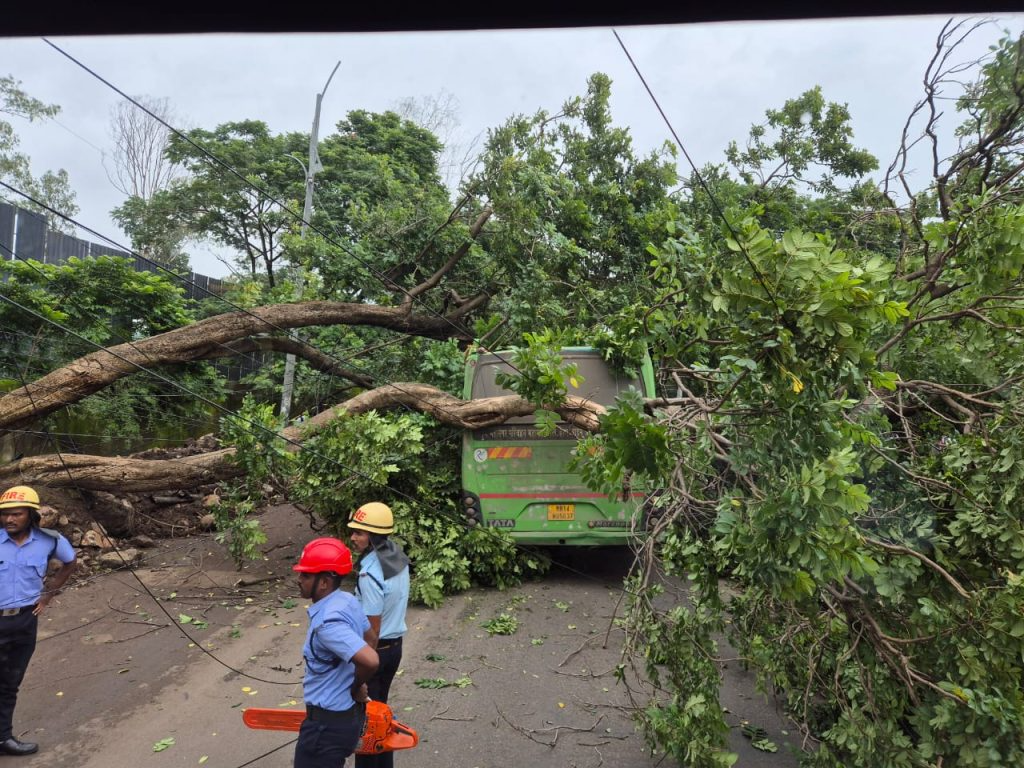 Meanwhile, a team from the fire brigade rushed to the spot and is working on a war footing to clear the fallen tree and ensure public safety.