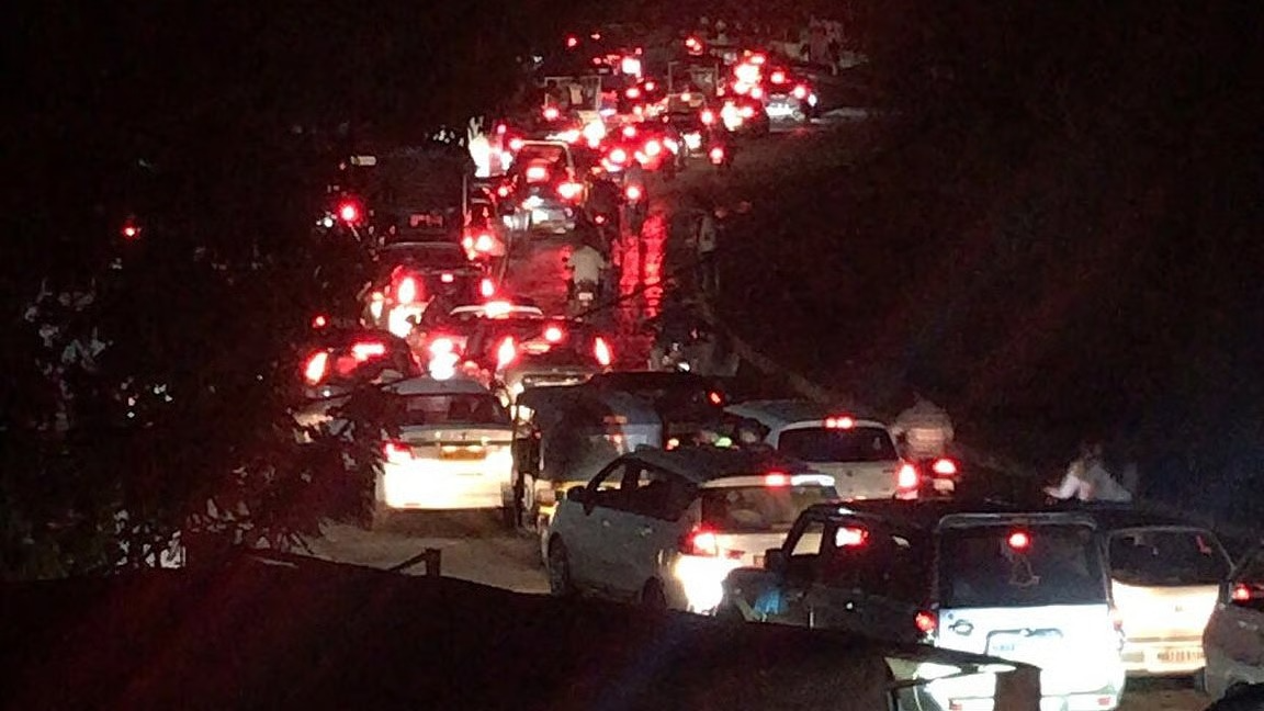 This past Sunday saw a surge in visitors eager to enjoy the overcast skies and cool breeze brought by the approaching rains. The heavy turnout, however, caused prolonged traffic jams stretching from Donje to Khadakwasla. Many vehicles were stuck in bumper-to-bumper traffic for hours, with the gridlock beginning around 6:30 pm and showing little improvement even by 9 pm.